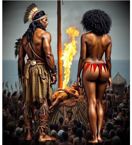 Молодой вождь с повязкой вокруг головы, богато украшенной перьями, обратил взор на неподвижно стоящих женщин. Его глаза, отражающие пляшущие огоньки ритуальных костров, увидели стройную красавицу Кими, освещенную светом гудящего пламени, и он ощутил всю боль утраты в душе любимой женщины. Понимая, что приблизиться, обнять и утешить ее не в обычаях племени, он лишь молча стоял чуть впереди своих воинов, скрестив мускулистые руки на груди.