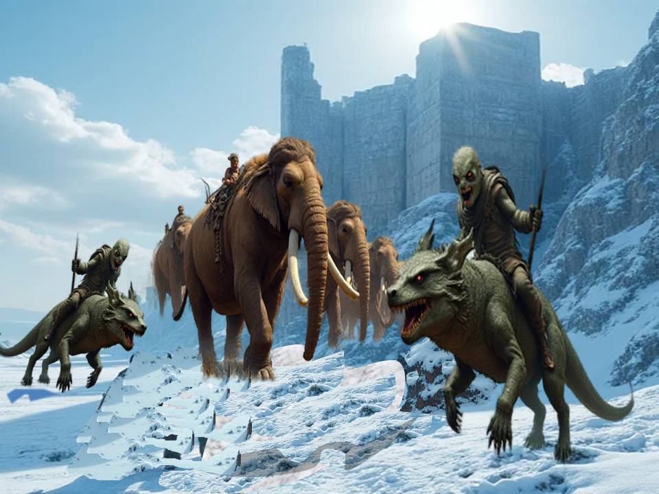 По команде раджана, ратники стали поднимать на стену ежи из заостренных кольев и сбрасывать их под стены. Мамонов распрягли и загнали в стойла. Перед воротами установили особенно много ежей. Заготовленные крепкие бревна на случай, если стену к приходу врагов не успеют восстановить, ратники стали лихорадочно стаскивать к проему и устанавливать прочную деревянную ограду. Враг не мог двигаться быстро из – за глубоких снегов, поэтому у ариев появилась возможность полностью выполнить оборонительные работы до штурма.