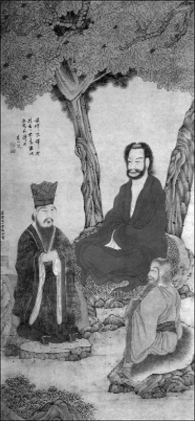 Конфуций, Лао-цзы и буддийский архат. Свиток эпохи Мин