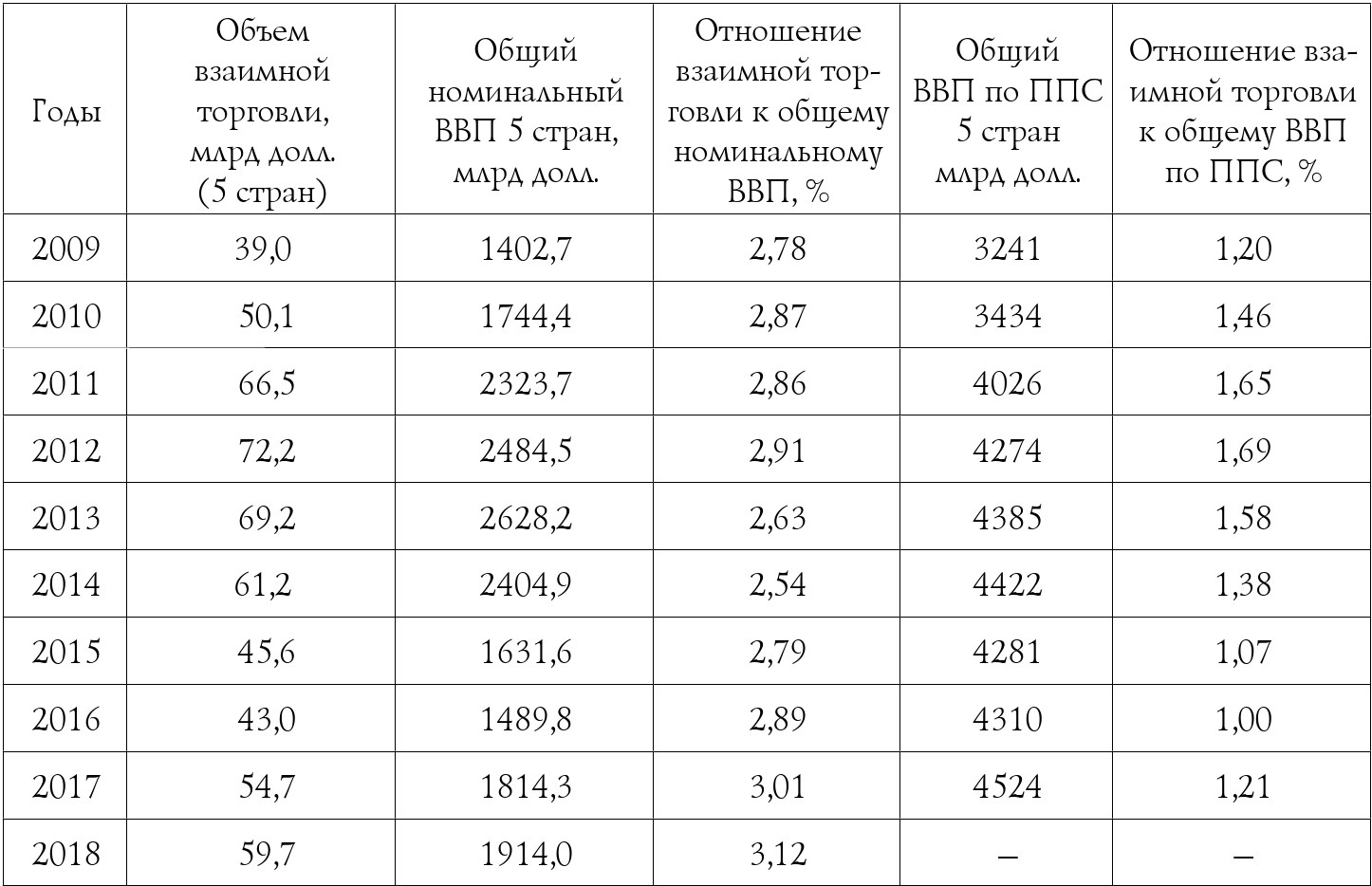 Рассчитано по: данные интернет-ресурсов: WorldBank.Opendata.1960–2017.data.worldbank.org/ indicator/NY.GDP.MKTP.CD?locale=ru&locations=; ЕЭК. Статистика ЕАЭС. Статистика внешней и взаимной торговли. Январь–декабрь 2018 г. и прошлые периоды. www.eurasiancommission. org/ru/act/integr_i_makroec/dep_stat/tradestat/tables/Pages/default.aspx; Внешняя торговля стран Содружества Независимых Государств за 2011 и 2013 гг. М.: Межгосударственный статкомитет СНГ, 2011, 2013.