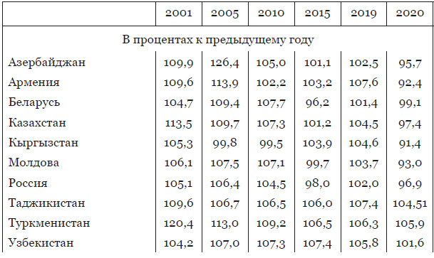 Правда, в начале нулевых годов произошли некоторые изменения в указанных выше процессах, о чем речь пойдет ниже, но перед этим обратимся к статистическим данным о развитии стран СНГ.