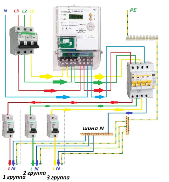 Схема подключения счетчика к трехфазной сети