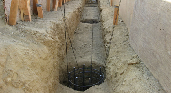 Если присутствуют грунтовые воды в скважинах (можно заметить на этапе бурения), следует опустить трубу в скважину диаметром свай. После чего, в эту трубу погружается арматурный каркас и омоноличивается.