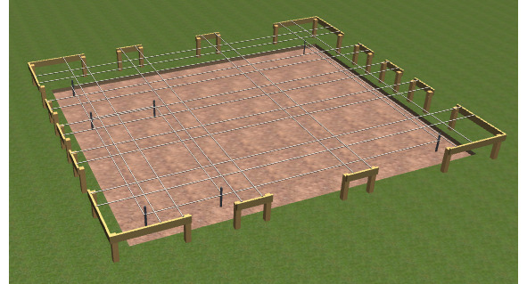После чего, убедившись, что диагонали соблюдены, можно приступить к заливке бетона.