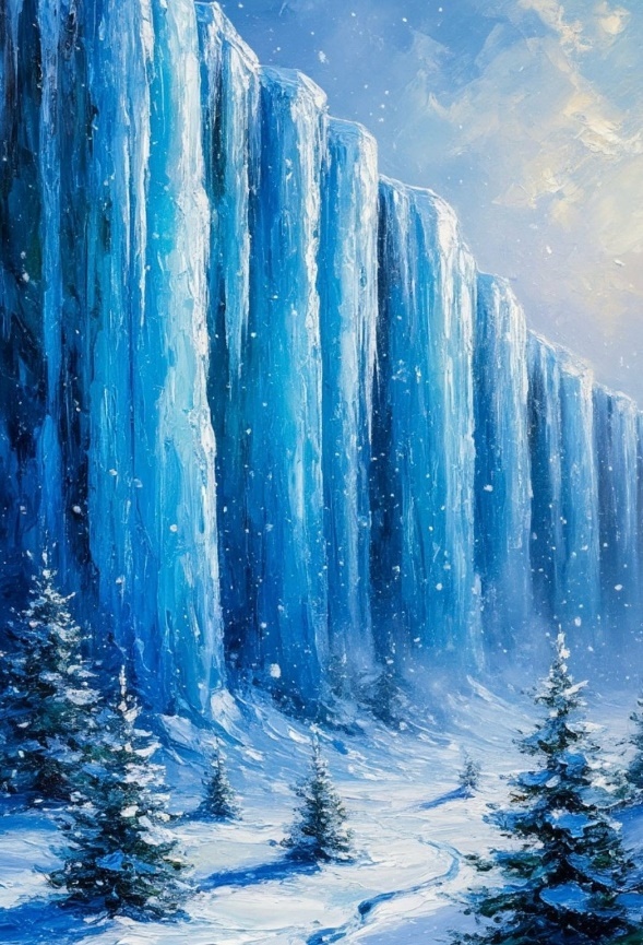 Каждый изгиб ледяной стены был покрыт слоем инея, что сверкал в солнечных лучах словно был соткан из миллиона драгоценных камней. Ветер нежно ласкал ее замерзшую поверхность, унося с собой пушистые искрящиеся снежинки. На первый взгляд казалась, что это грандиозное сооружение сделано из чистейшего хрусталя. Стена поднималась высоко в небо, где терялась среди невесомых облаков и переливалась в солнечном свете словно окутанная мириадами звезд. Мне посчастливилось оказаться на самом верху.