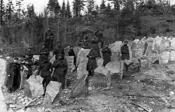 Красноармейцы осматривают финские надолбы. Из коллекции Натальи Филипповой.