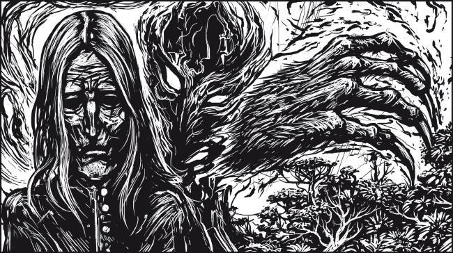 Я наклонился, поднял кинжал, затем сделал паузу, посмотрел вверх. Луна висела близко к зениту. Если я убью эту тварь как человека, ее страшный дух будет преследовать меня вечно. Я сел и стал ждать. Тварь смотрела на меня горящими волчьими глазами. Длинные жилистые конечности судорожно изгибались; казалось, на них стремительно нарастает густая шерсть. Опасаясь потерять рассудок, я выхватил у ночного монстра его собственный клинок и зарубил его. Затем вонзил лезвие в землю и бросился бежать прочь.