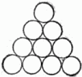 Для того чтобы ясно представить себе сущность этого принципа, возьмём большое количество биллиардных шаров и начнём укладывать их, стремясь создать наиболее плотную упаковку. Прежде всего составим плотный слой – он выглядит так, как биллиардные шары, собранные «треугольником» перед началом игры (рис. 19).