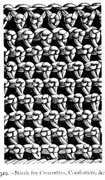 329.–Stitch in Knitting, for Couvrettes, Comforters, Opera Caps, Carriage Shawls, Jackets, &c.