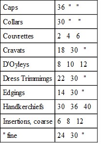 TABLE OF THREADS SUITED TO VARIOUS ARTICLES WORKED IN POINT LACE