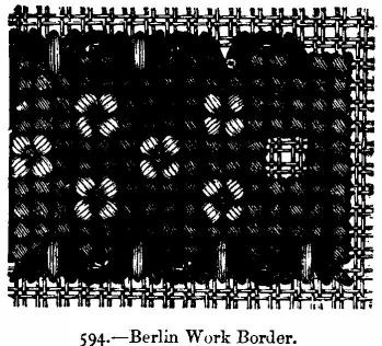 The plainest stitch in Berlin wool work is the common cross stitch; illustrations 577 to 584 show varieties of the same.