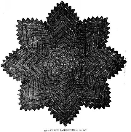 Draw always the second stitch of 2 stitches through the first, and work 1 stitch in the stitch which has been drawn through the first, and then 1 stitch through the other stitch. In the 8th round work always 2 stitches in the stitch between the 2 crossed stitches, 1 stitch in all the other stitches. Lastly, darn the rosette, from illustration, with fine glazed cotton.