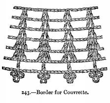 Materials: Messrs. Walter Evans and Co.'s crochet cotton No. 80, or with No. 8 or 10 for couvrettes.