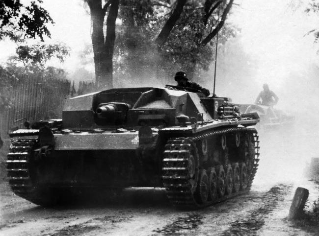 Штурмовые орудия на марше. САУ этого типа являлись основным типом бронетехники, использовавшимся немцами в Крыму.