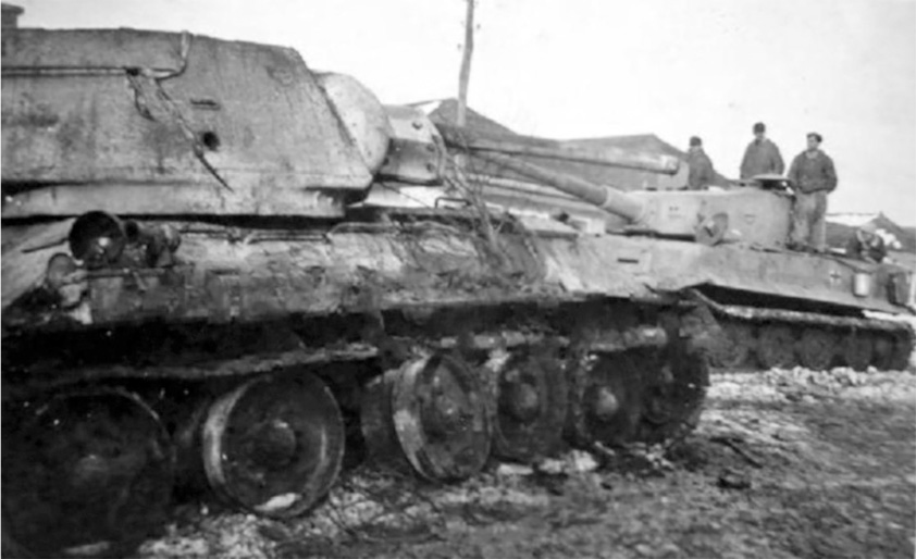 После разгрома 68-й пехотной дивизии придали 11 «Штурмгешютцев»[90] прибывшей 14 марта 311-й бригады и вновь бросили в наступление. На этот раз задачи были скромнее, удар с целью отрезать советские части в самом Скалате. Успех немцев 18 марта ограничился выбиванием 16-й мехбригады из Колодзеювки, одна 76-мм батарея по израсходовании боеприпасов была раздавлена (по нашему донесению «Тиграми», но речь явно о «Штурмгешютцах»). Дальнейшее продвижение противника вновь было остановлено 8 танками 28-го танкового полка. Историограф штурмовых орудий Ф. Куровски писал об этом периоде деятельности 311-й бригады: «Атака на хорошо укрепленные позиции, насыщенные средствами противотанковой обороны, захлебнулась»[91]. Потери 6-го гв. мехкорпуса в этом бою составили 83 человека убитыми, 25 ранеными, подбито 2 Т-34, разбито 4 76-мм орудия, 3 45-мм орудия[92]. Советская сторона претендовала на 2 подбитых и 2 сожженных «Тигра», но численность боеготовых САУ 311-й бригады за день не изменилась.