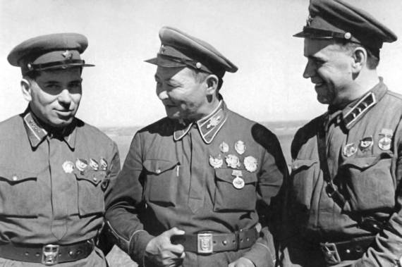 Командующий фронтовой группой командарм 2-го ранга Г.М.Штерн, командующий армией МНР маршал Х. Чойбалсан и командующий 1-й армейской группой комкор Г.К. Жуков.