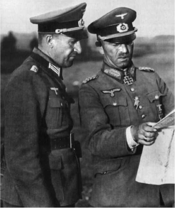 Генерал-майор Франц Ландграф обсуждает обстановку с командиром 6-й мотострелковой бригады полковником Эрхардом Раусом