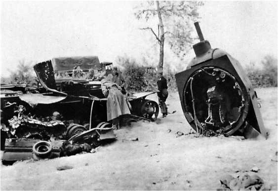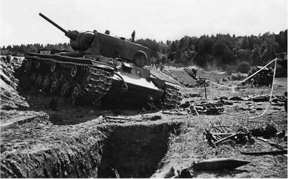 Разрушенный внутренним взрывом танк КВ-1 из 2-й танковой дивизии 3-го механизированного корпуса.