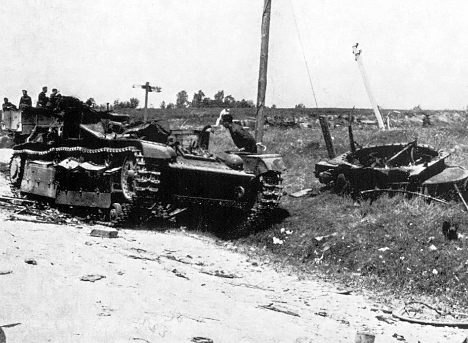 Низкие плотности дивизий у границы и на рубеже «линии Сталина» можно было компенсировать большими массами техники, которая продлевала жизнь окружаемых армий. Быстро таявшие механизированные корпуса стали стальным щитом откатывавшихся от границы дивизий. Авиация часто становилась единственным средством воздействия на прорывающиеся глубоко в тыл моторизованные корпуса вермахта. К августу этот ресурс был практически исчерпан. Более того, РККА фактически лишилась как класса самостоятельных механизированных соединений масштаба танковой дивизии. Механизированные корпуса были расформированы. Вместо танковых дивизий начали формироваться танковые бригады, представлявшие собой организационные структуры непосредственной поддержки пехоты. Это означало принципиальную разницу в возможностях ведения операций РККА и вермахтом. Немецкая армия обладала инструментом для развития прорыва в глубину – танковыми и моторизованными дивизиями, объединенными в моторизованные корпуса. Красная армия была лишена крупных подвижных соединений, являвшихся наиболее эффективным средством парирования таких прорывов. Отражать удары немецких танковых клиньев предстояло передвигавшейся пешком пехоте. С предсказуемыми результатами.