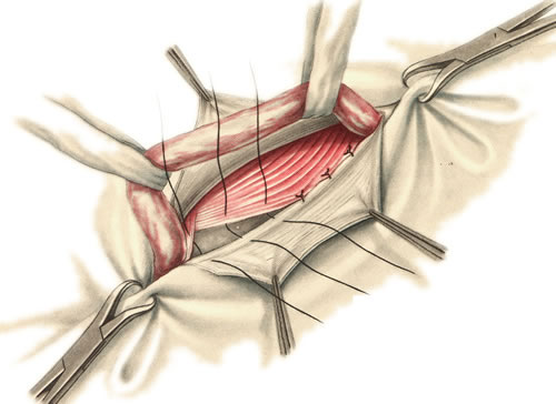 Рисунок 2. Восстановление апоневроза наружной косой мышцы живота формированием поверхностного пахового кольца