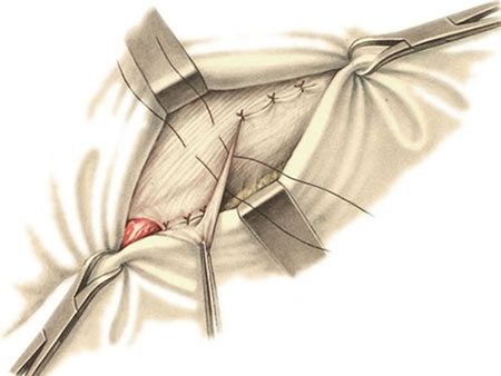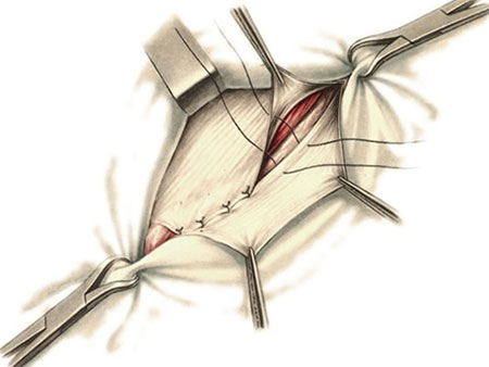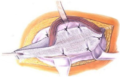 Рисунок 19. Восстановление поврежденного участка поперечной фасции