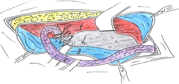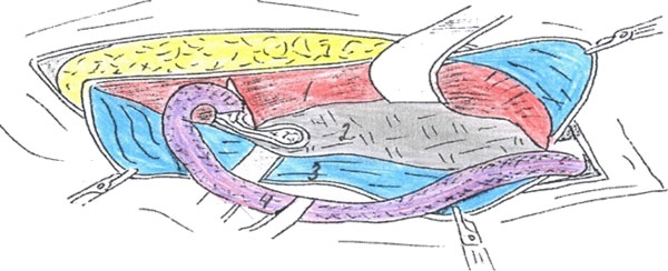 Рисунок 27 1 – мышцы, 2 – швы, 3 – полоска