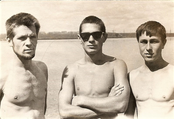День строителя на водохранилище. Слева направо: бригадир Аслан, недолинчёванный Саша и Ильяс с душой поэта.