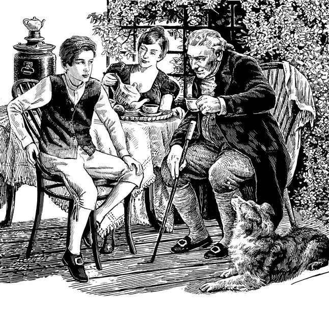 Когда экипаж, в котором сидела Жозефина Ивановна, тронулся, Вася долго смотрел ему вслед и сам дивился, что прощание для него было таким лёгким. Оно не вызвало в нём чувства большой грусти. А ведь, кажется, он любил эту маленькую старенькую француженку, которая учила его уважать своих наставников и так часто наказывала его Одиссеем.