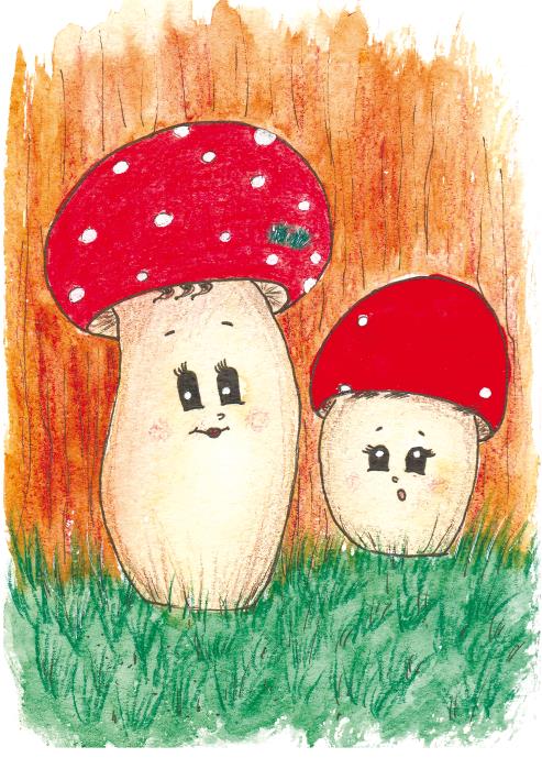 Наутро рядом с ними вылез первый маленький мухомор. Это была красивая девочка. На её шляпке ещё осталось несколько зелёных травинок.