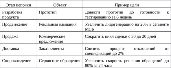 Реальная цепочка создания ценности – это цепочка управляемых объектов с ясными целями, а не просто маршрут передачи документов между отделами или изделия между цехами.