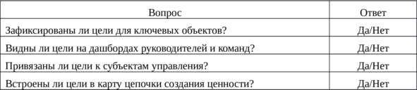 1. В реестрах объектов и задач для каждого объекта управления должно быть зафиксировано, какая цель на него направлена, кто субъект, какая метрика отслеживает выполнение. Цели не висят отдельно – они встроены в реестр как атрибуты объекта.