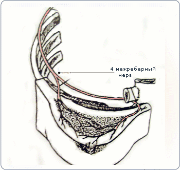 Существует расхожее мнение, что пластика груди имеет негативные последствия: что после пластической операции грудь теряет рефлекторную отзывчивость. Якобы при разрезе перерезаются нервы, вследствие чего грудь теряет чувствительность и перестает быть эрогенной (особенно чувствительной) зоной. Это не совсем так. За чувствительность соска и ареолы отвечает 4 межреберный нерв. Он проходит на уровне подмышечной линии, разветвляется на две части и, проходя по окружности груди, входит в ткань железы. Как показано на рисунке внизу.