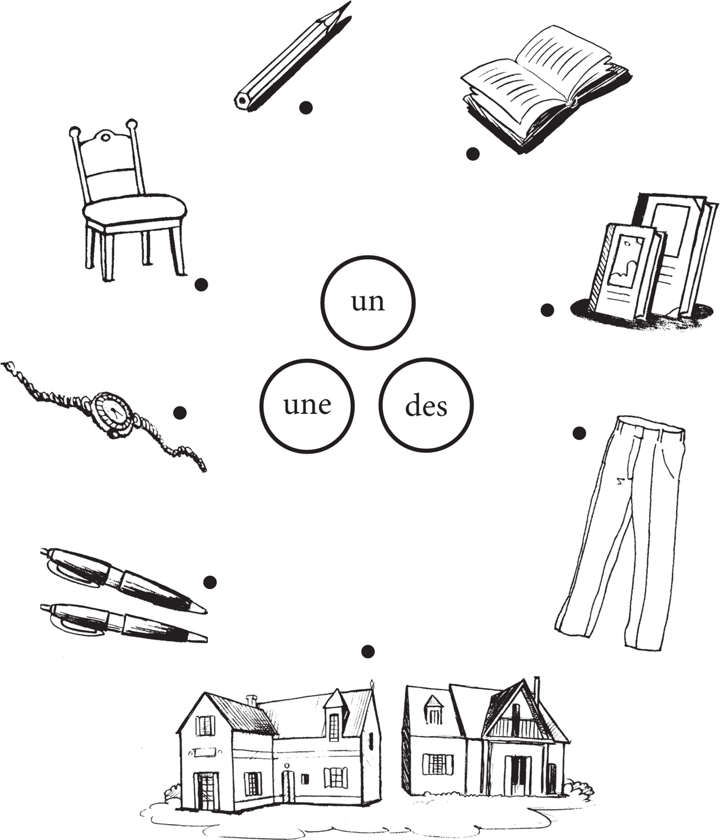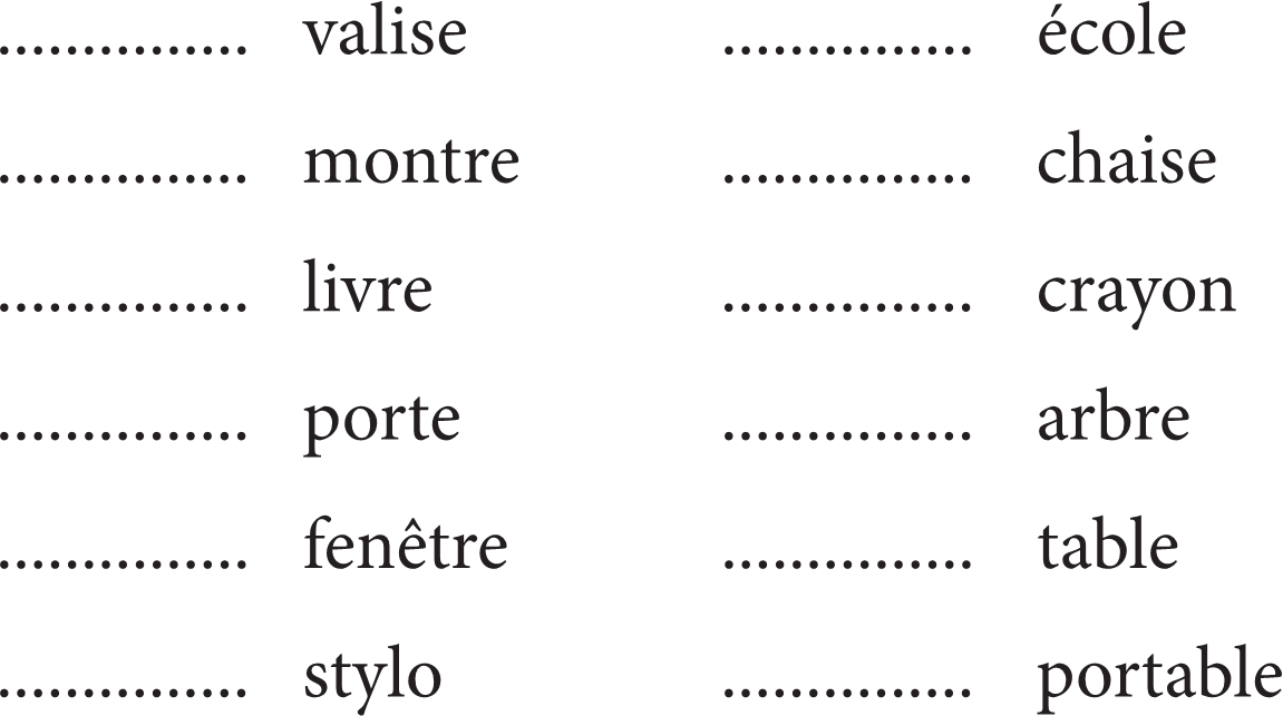 ⧫ Сделай подписи к рисункам и напиши существительные с неопределённым артиклем un, une, des.