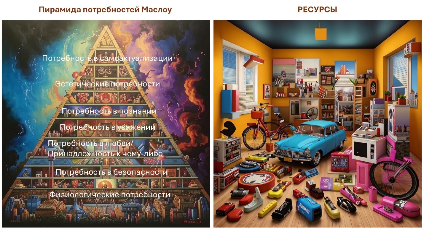 Вы наверняка слышали о такой пирамиде потребностей Маслоу. Если нет, то посмотрите в интернете, что это такое. Так вот, ресурсы и потребности – это немного разные вещи. По тематике книги ресурсы (в широком понимании этого слова) это то, без чего организм и вид в целом не сможет выжить. Потребности же это желание иметь эти ресурсы, а также и те, без которых виду выжить можно. Без еды не выживешь, без новой модели смартфона можно обойтись.