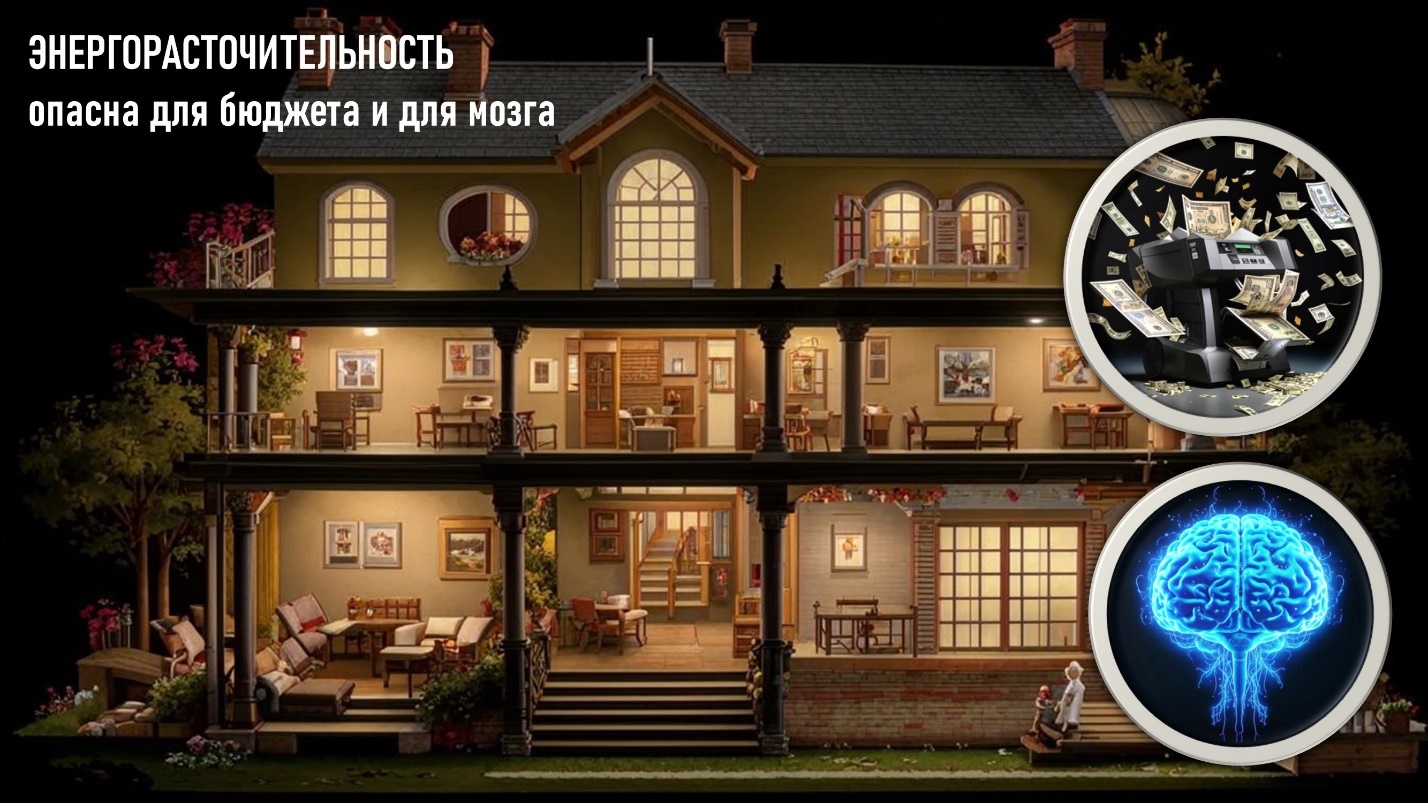 Вот точно так и наш мозг – он занимает 2% объёма тела, но энергии потребляет до 23%. Так происходит в том числе и потому, что все имеющиеся в нём нейросети потребляют энергию. И чисто по физиологическим причинам организмом на потребление мозгом энергии выделен лимит. Так как если мозг за этот лимит выйдет, то другим органам энергии достанется меньше, а это чревато гибелью организма.