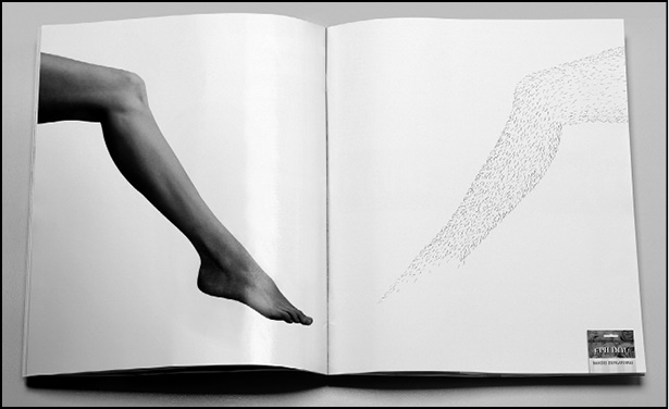 Division technique can be applied not only to the content of advertising but also to the form of advertising. Divide mentally the layout into two parts. Could this procedure lead us to some interesting ideas? In many cases it definitely would. In the beginning of the chapter I mentioned one of them.