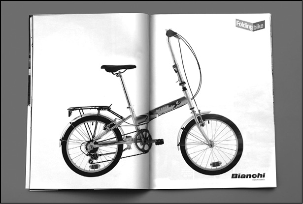 The manufacturer of folding bicycles splits the image of the product to demonstrate that even a child can fold the bike (see Fig. 2.8.).