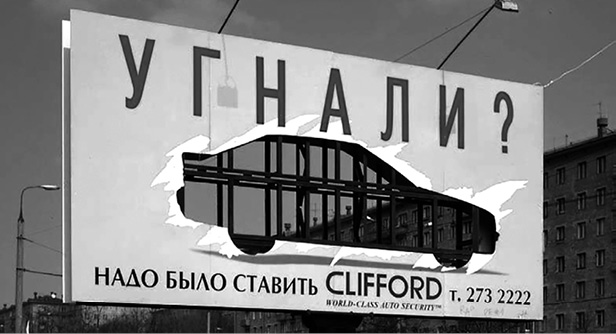 Fig. 2.12. One of the first teasers in Moscow. Headline: “Carjacked?” How do you think what product is advertised?