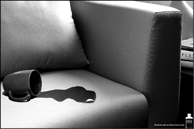 In the stain remover advertising, the stain of spilt coffee is divided from the sofa—it is literally peeling off. In a similar way, we can show the separation of the stain, for example, of melted ice cream from the back seat of the car. Or the stain of the ink could be divided from the carpet. And so on. These separations are performed quickly and easily. That is exactly what happens if you use the advertised product.