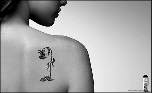 Here are a few more examples. In advertising moisturizer we see a tattoo with rose petals falling from a fading flower (see Fig. 2.5.).