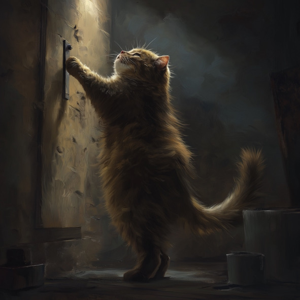 После того, как рычаг был опущен, кот уперся передними лапами в ту же самую, казалось бы, неподвижную стену и принялся ее толкать. Со стороны это выглядело столь нелепо, что Кирилл не мог не усмехнуться: «На что он вообще рассчитывает?» – промелькнула мысль. Но тут же мальчик вспомнил, как уже не раз удивлялся действиям Васьки, которые сначала казались бессмысленными, а в итоге приводили к ошеломляющему результату. И сейчас, похоже, кот действовал по тому же сценарию.