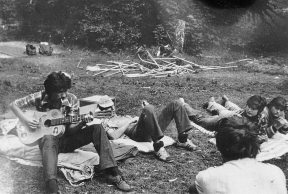 Ну, а 1983 как начался, так и продолжился – вместе с девушкой Лилей в основном. То есть, всяческие компании, походы, поездки, концерты и прочие увлекательные события происходили по-прежнему, но теперь я уже был вроде как не один. В это же время, видимо под воздействием различных сложных процессов в мозгу я начал сочинять песни, которых за последующие лет пять набралось, наверное, штук пятьдесят. Скажу прямо, из них какой-то интерес представляет, может быть, с пяток, ещё примерно 20—25 просто никакие, и по музыке, и по текстам, а остальные и вовсе полный шлак. Ясное дело, любовь – двигатель стихоплетства и прочего творчества, но был и ещё один фактор – в это время я увлекся новой, активно размножающейся фауной (или флорой, кто знает), так называемым «русским роком». Сам не заметил, как весь этот «Аквариум», Майк, «Странные Игры», «Мифы», те же «Россияне» практически полностью заменили мне на несколько лет западную и вообще любую музыку.