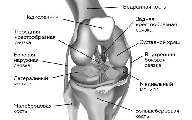 Наши кости соединяются друг с другом с помощью непрерывных соединений – хрящей, межпозвоночных дисков и т. д., и с помощью прерывных соединений – суставов. Давайте рассмотрим в качестве примера коленный сустав.
