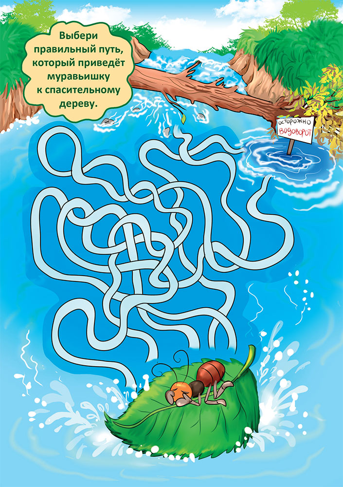 – Когда будешь проплывать мимо дерева, попробуй разбежаться и прыгнуть на его ветку! – крикнула Аринка муравьишке, и, кажется, он её услышал.
