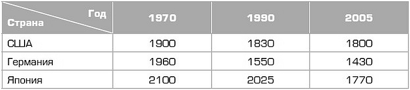 К концу XX века общество стало потребляться, а не производиться. Пережевывая гамбургер, человек усваивает стандарты поведения; садясь в автомобиль – занимает место в системе статусов; разглядывая этикетки – принимает систему ценностей. Общество производства сменилось обществом потребления потому, что изменилась структура жизнедеятельности: в материальном производстве занято около 30%, люди работают по 6–8 часов 4–5 дней в неделю и имеют от двух до четырех недель оплачиваемого отпуска. Теперь жизнь людей разворачивается за горизонтом производства. Люди работают все меньше (табл. 2), а потребляют все больше. Жизненным миром человека становится потребление. Потребление превращается из простого приобретения и использования вещей в целую систему действий и идей, получившую название «консьюмеризм» (от англ. consumer – потребитель).