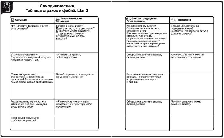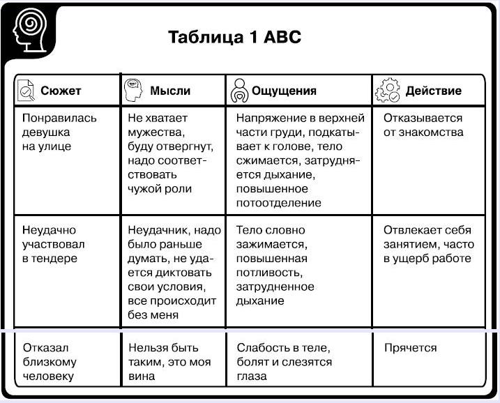 ✓ Если вашим поведением выступают мысли по поводу мыслей (например, «Корю себя за то, что так подумал о родителях»), то тогда первичные мысли стоит занести как ситуацию в новую таблицу, а вторичные уже как мысли по поводу них (то же самое касается и мыслей по поводу эмоций).