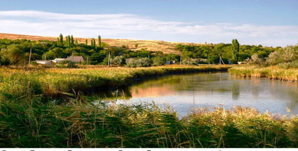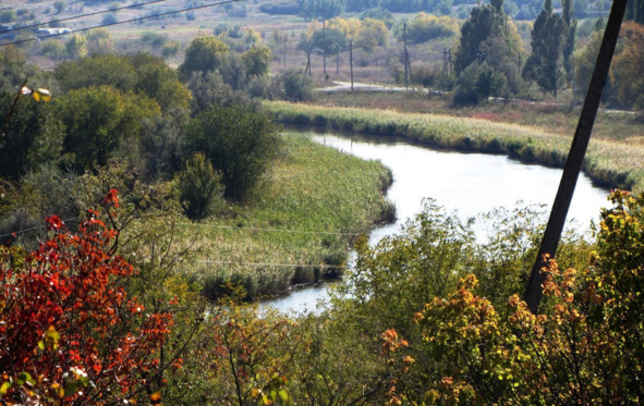 Рядом протекает когда-то полноводная река, а сегодня это заросшее камышом русло реки Большая Белозёрка. Почему Белозёрка?