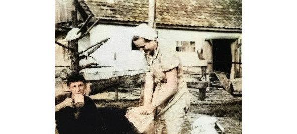 Фотография Ивана Иванова. Лучшая доярка колхоза «Красный Октябрь» Валентина Чулкова и любивший парное молоко, и не только, пастух Николай Иванов