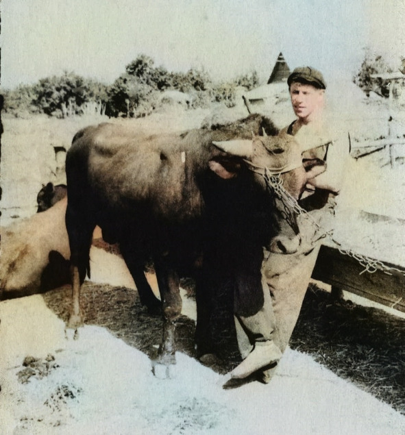 Пастух, он же по совместительству скотник при колхозе Николай Иванов, так воспитал своего помощника – быка Мишку, что тот слушался только его и никого к себе больше не подпускал. Когда Николая призвали в армию, быка пришлось ликвидировать. Погрузить его не удалось, и его решили ликвидировать на месте. Задача оказалась не лёгкой. Электрик предложил усыпить электрическим током. Так как бык грозно мычал и мог сорваться с цепи, всех зевак решили убрать подальше, если вдруг случиться не штатная ситуация. Но наш народ такой, чем больше запрещаешь, тем интереснее посмотреть. Операция началась удачно. Привязали «фазу» на железный конец вил, а чтобы замкнуть цепь, по которой должна образоваться электрическая цепь, вторым концом цепи стал огромный бык. И вот трясущимися от волнения руками электрик поднёс вилы к телу быка. Дальше было не предсказуемое действие со стороны быка. Порвав цепь, бык, грозно ревя, бросился по территории двора фермы крушить всё, что попадалось на его пути.