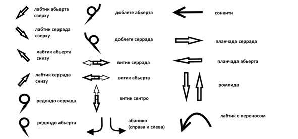 Запсь комбинаций ударов производится при помощи специальных обозначений – рисунок 12.